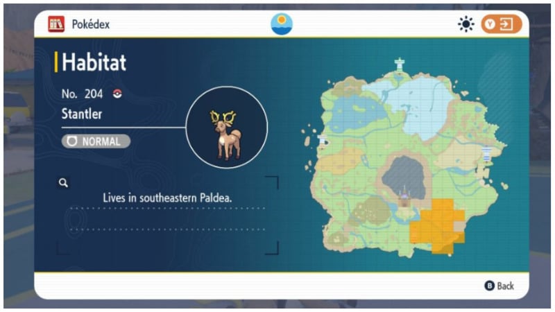 As for the habitats of Stantler, then everything is quite simple. Unlike most other Pokémon, Stantler doesn’t roam the many parts of the Paldea region, preferring to stay in only a few locations. So visit the following points, and you will meet a few:
