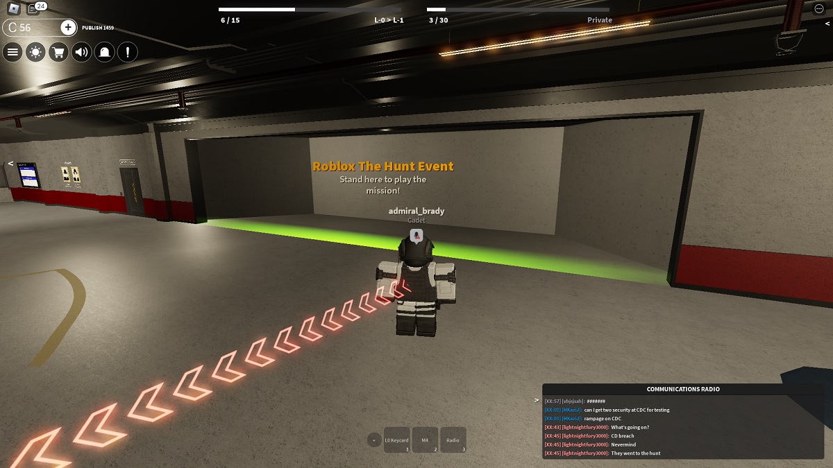 Spawning as a Security Department guard puts you very close to the event’s starting point. As soon as you’re in, step through the first door, then use the door on your right.