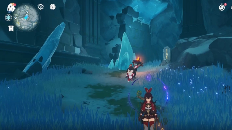 Return to the cave and glide to the nearest platform. Follow it to the cave exit, and you will find a sealed vault. This will open with Dragonspine’s Last Trio quest boxes, progressing your endeavor to unlock the Snow Tombed Starsilver. Inside, you will find chests and the fourth Stone Tablet.