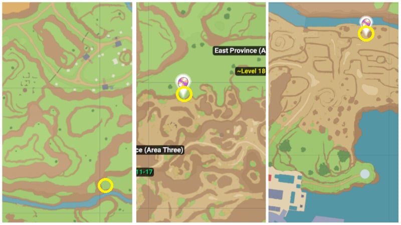 • Also, you can visit South Province (Area Three). Take the Pokemon Center as your starting point and head northeast. Get to the point in the second image above and collect the Poké Ball with the TM.