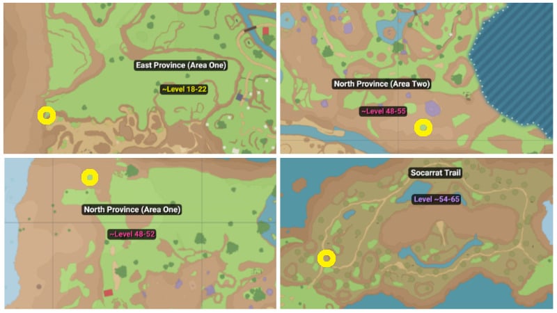 - Then go down a little south and visit North Province (Area Two). Not far from the river flowing into the sea, get to the point in the third image above. You will find the third TM in a small grassy area.