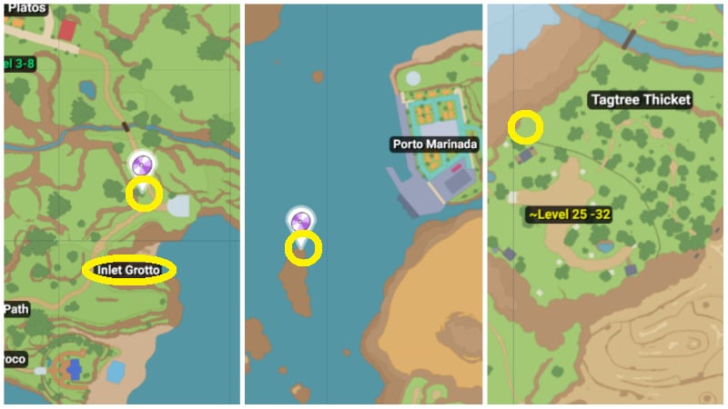 - Finally, head to the eastern part of the Paldea region and visit Tagtree Thicket. Get to the point in the third image above and collect the TM near the fence and the rock.