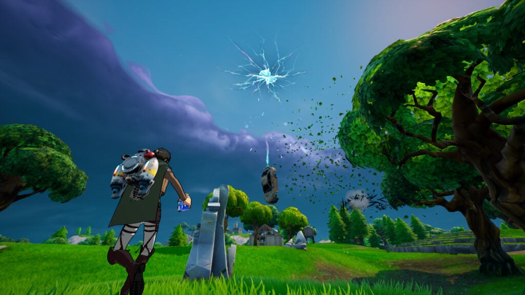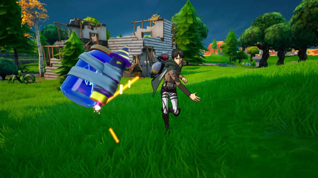Eren Jeager throwing Junk Rift in Fortnite OG