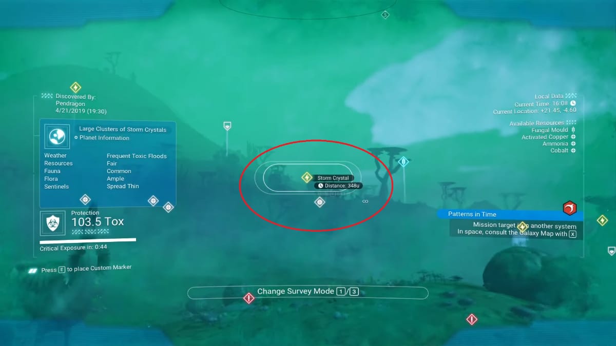 - Land and use your Analysis Visor to detect Storm Crystals during a storm
