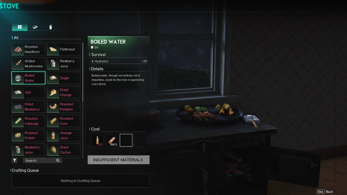 The next way to get water in Once Human is by boiling it. You might’ve noticed already that whenever you reach a lake or river, you get the option to drink from it. Refrain from doing so. You might satiate your thirst for a while, but it’ll hurt. Instead, you can grab the water and return it to your home, then craft a Stove to boil it. Here’s what you need for a Stove: