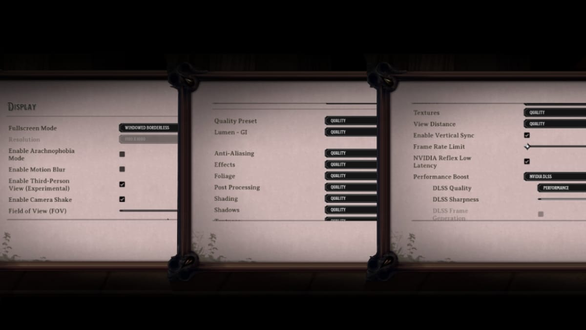 So far, we’ve noticed that lightning effects take a big toll on Nightingale’s performance, so to increase your experience, you can lower these effects. If push comes to shove, the easiest way to increase your FPS is by playing on a lower resolution. However, this will make the game look blurry, and we advise against it. If you have an NVIDIA GPU, the DLSS features are well-implemented in this game and provide a significant performance boost. If possible, tinker around with the presets until you find a good setting for you.