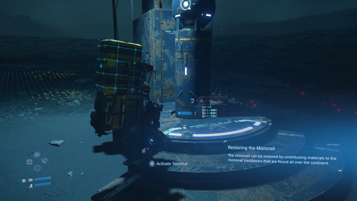 Restoring the monorail works exactly the same as restoring roads. First, you need to find the terminals along the broken-down monorail. You can identify them easily since they have a specific icon, which also appears on the map after you’ve brought a region into the network. Once you locate one, approach it to see the materials it will need.