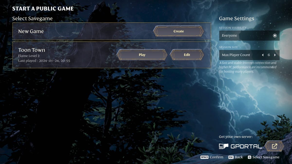 To host a public game in Enshrouded, follow the same instructions as above except:
