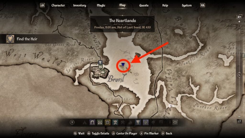 In the Niben Bay lake next to Bravil, there’s a small island that you can swim to. If you’re unsure where to go, simply head to the location highlighted on the map in the image below. Here, you’ll find a knight called Gaius Prentus who is stationed there and valiantly attempting to guard a Strange Door.