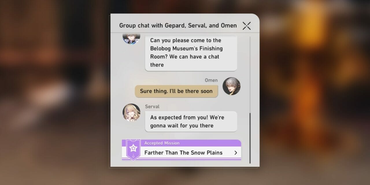To unlock Lynx’s companion mission, you must first complete the Only A Child, Serval’s companion quest in Honkai Star Rail. With the arrival of the second banner phase, the quest will unlock automatically. When you start your game, you will get a group message with Serval and Gepard. The duo will ask you for a favor, and this will let you start the “Farther Than The Snowplains” mission in Honkai Star Rail.