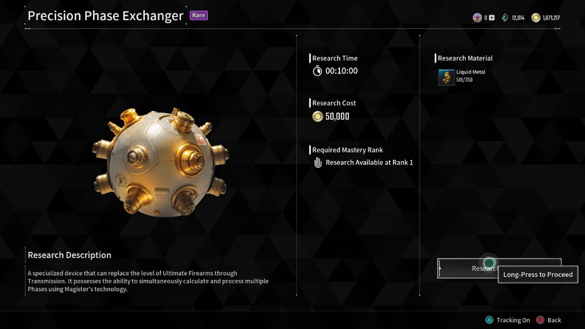 You’ll need Precision Phase Exchangers for high-tier weapons like the Thunder Cage and normal Phase Exchangers for low-tier guns. As for creating them, you’ll have to ask Anais to research them for you. The cost is some basic material that you’d get by scrapping your unwanted and low-level weapons in the inventory.