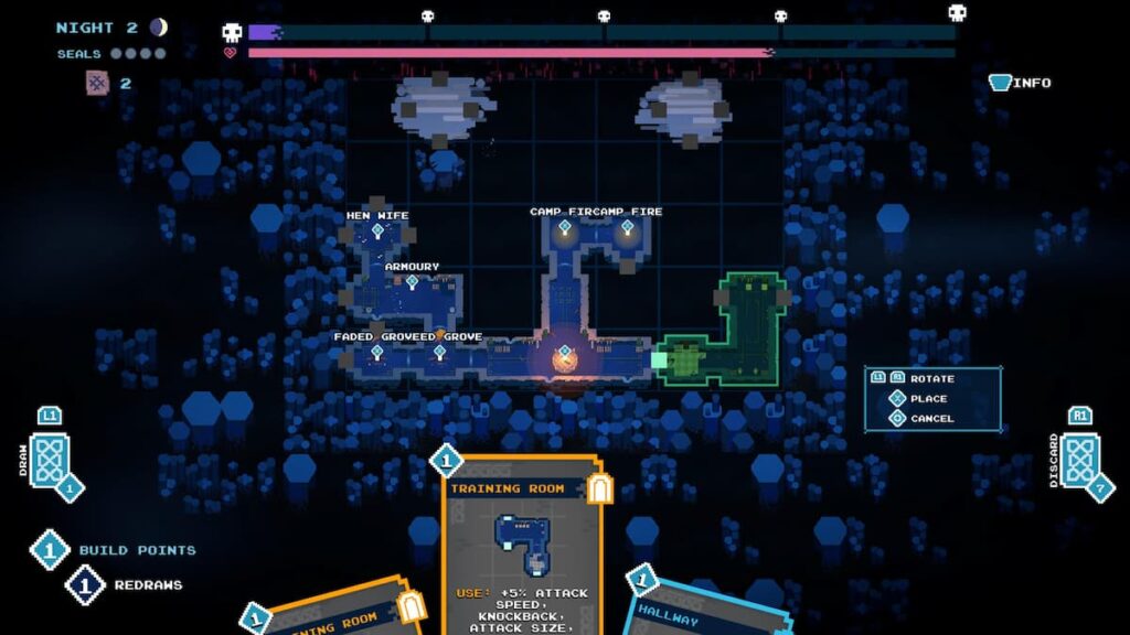 Dylan: When I first played Restless Ruins, I thought that getting to the boss as quickly as possible would be a good strategy. However, the more I play, the more I realise that it’s far more important to build up your dungeon/path so that you can take advantage of all the different buffs to help against your fight with the level’s boss, aka the Warden. What is an effective strategy that you’d recommend to beginners?
