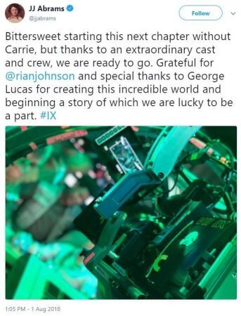 JJ Abrams has confirmed via Twitter thatย Star Wars: Episode IX‘s production cycle is now in full swing. The filmmaker’s heartfelt message touched upon his mixed feelings heading into the next installment of theย Star Wars franchise. Although grateful to those who have helped him on this endeavor, nothing feels the same without the late Carrie Fisher.