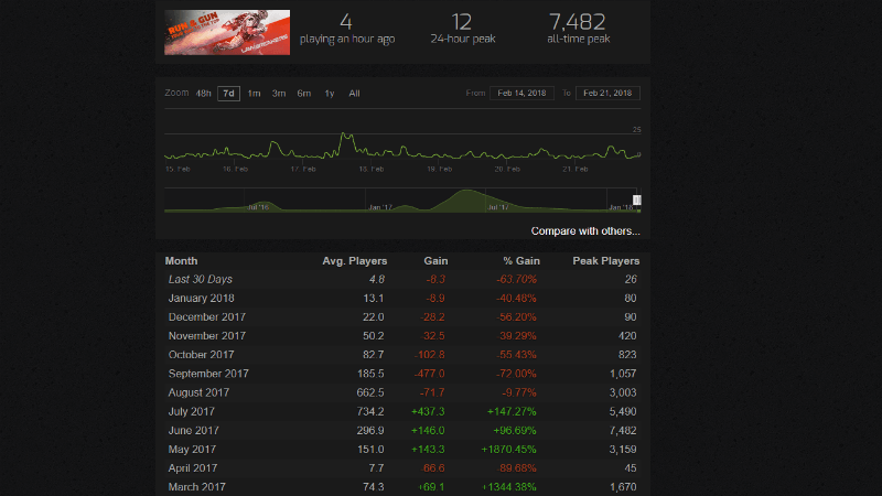 The fact that there are a multitude of other very popular FPS out in the current market, like PUBG, certainly plays a role in people not playing the game. Yet even a saturated market shouldn’t have that much of an effect on the game considering how many free weekends Boss Key has run for the game.