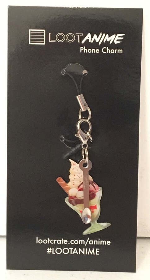 I was beginning to wonder why they alwasy give one of these phone charms with every Loot Anime box and then it just hit me (maybe it already hit me before and I forgot) that this is like the pins in other Loot Crate boxes. This phone charm makes me want to eat a banana split!