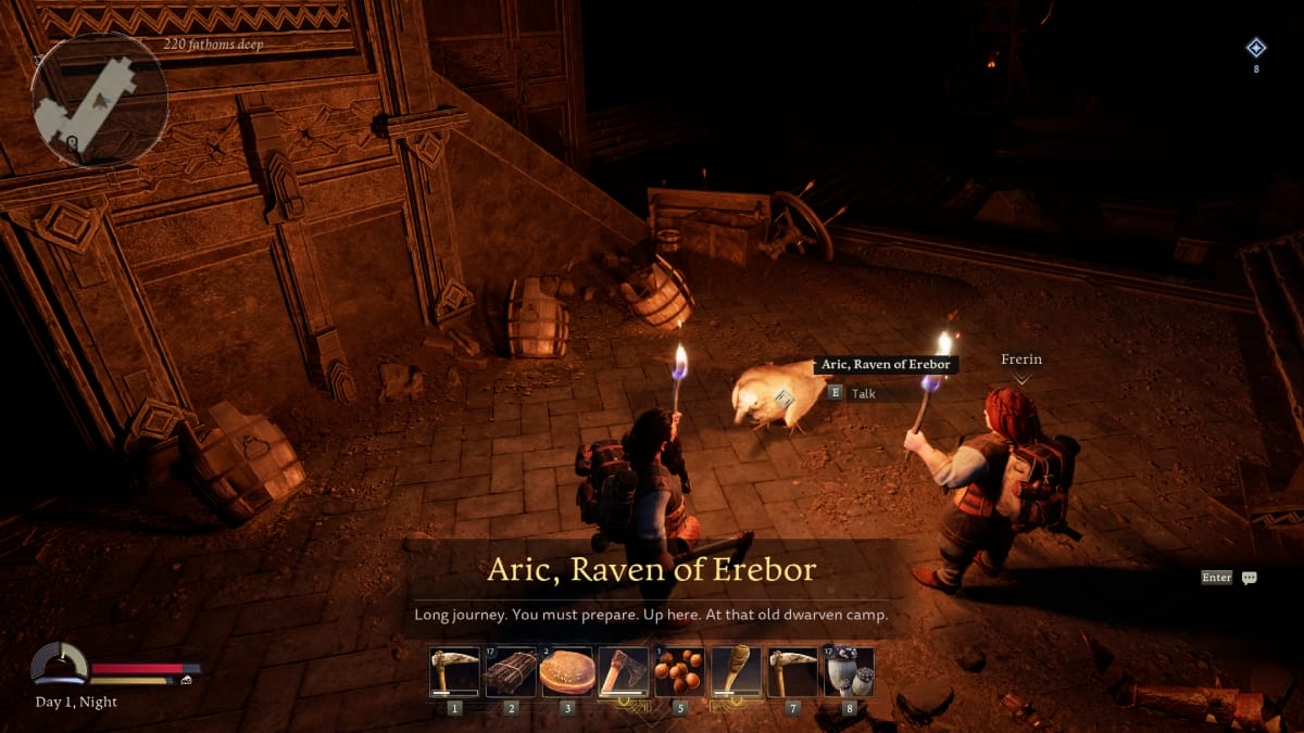 Unlike many other survival games, there is a story here. The main quest is to reclaim Khazad-dรปm, accompanied or alone. Upon arrival at the site, an accident causes you and up to seven other companions to become trapped. From there, you discover a curse plaguing this ancient kingdom, and it is up to you and your company to fix it all.