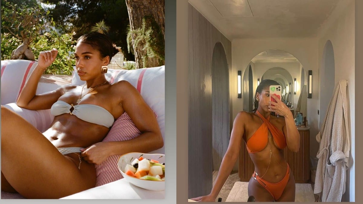 The icon followed up with a pic of a green string bikini top hanging on a balcony overlooking a lake. Another post showed Lori Harvey showing off her buxom figure in an orange two-piece swimwear from Yevrah in a mirror selfie. The criss-cross neckpiece bared her toned abs, further accentuated by a connecting bodychain. With a body like hers, who wouldn’t celebrate those workout gains at every turn?