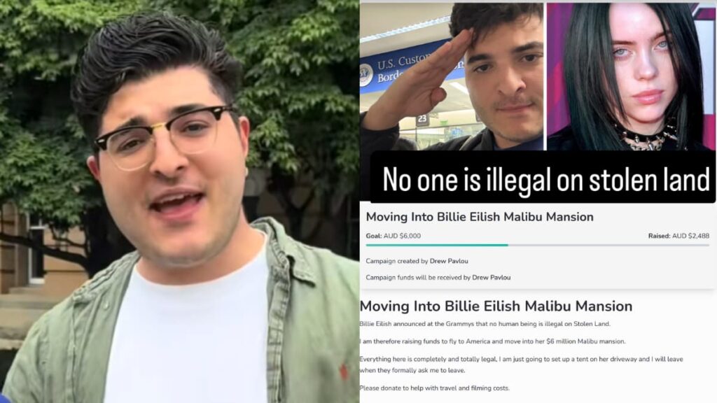 A man is planning to fly across the globe to move into Billie Eilish’s mansion in Malibu, California, and is raising funds to achieve his goal. This comes in direct response to the singer’s Grammys speech, where she declared that “no one is illegal on stolen land.”