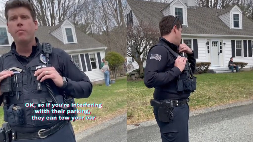 A confrontation in a Massachusetts neighborhood is gaining attention after a video showed a couple and a police officer challenging a woman’s right to park on a public road. The woman, who had stopped while walking her dog, was told she could not park there because the couple “own 7 acres nearby.” The situation escalated when a responding officer appeared to back the couple’s claim, raising questions about how public road access is understood and enforced.