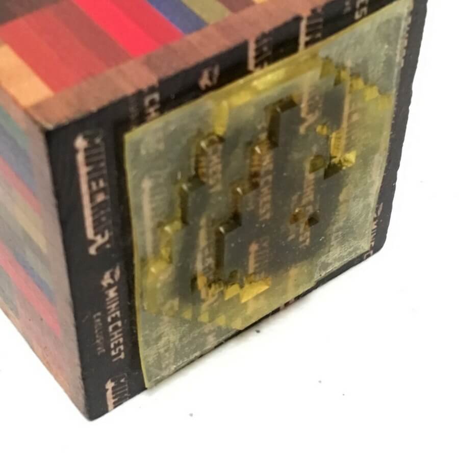It’s a Minecraft Rubber Stamp and Ink Pad. I really like the design of the stamp as it represents the bookshelf in the game.