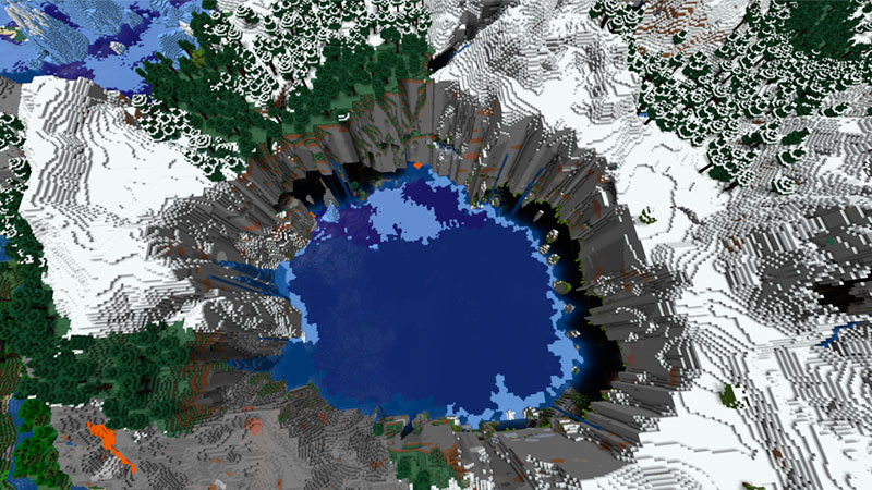 Reddit user u/Beefy_Nad shared this amazing and scenic Lush Cave, located inside a huge snowy sinkhole. Conveniently, this Java and Bedrock Edition seed (although only tested on the Java Edition) can be found near your spawn location.