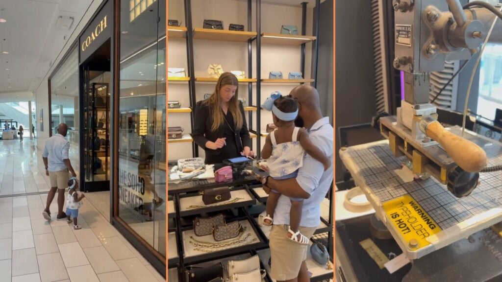 TikTok user samster29_s and husband went to a Minnesota mall and into a Coach designer goods store with their daughter in tow. Inside, the dad helps the child talk to the staff and select one of the purses they have available. Of course, mom came with them to help make sure she made the right decision.