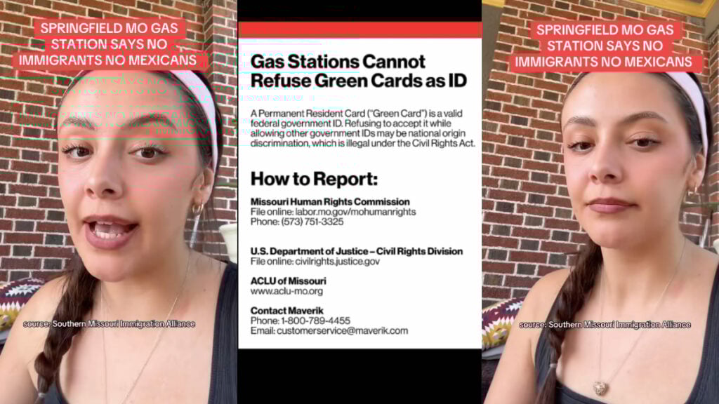 Political divisions within the USA continue to skyrocket daily, and social media influencers have been quick to speak out on both sides. TikTok creator @jeremyfranklinmitsubishi is one of several channels against right-wing agendas. They recently reported on an immigration scandal that is taking the internet news world by storm. A Maverik gas station in Springfield, Missouri posted a sign stating “company policy” no longer acknowledges Green Cards as valid identification. The channel’s creator, who also goes by “dotte daughter” had a lot to say.