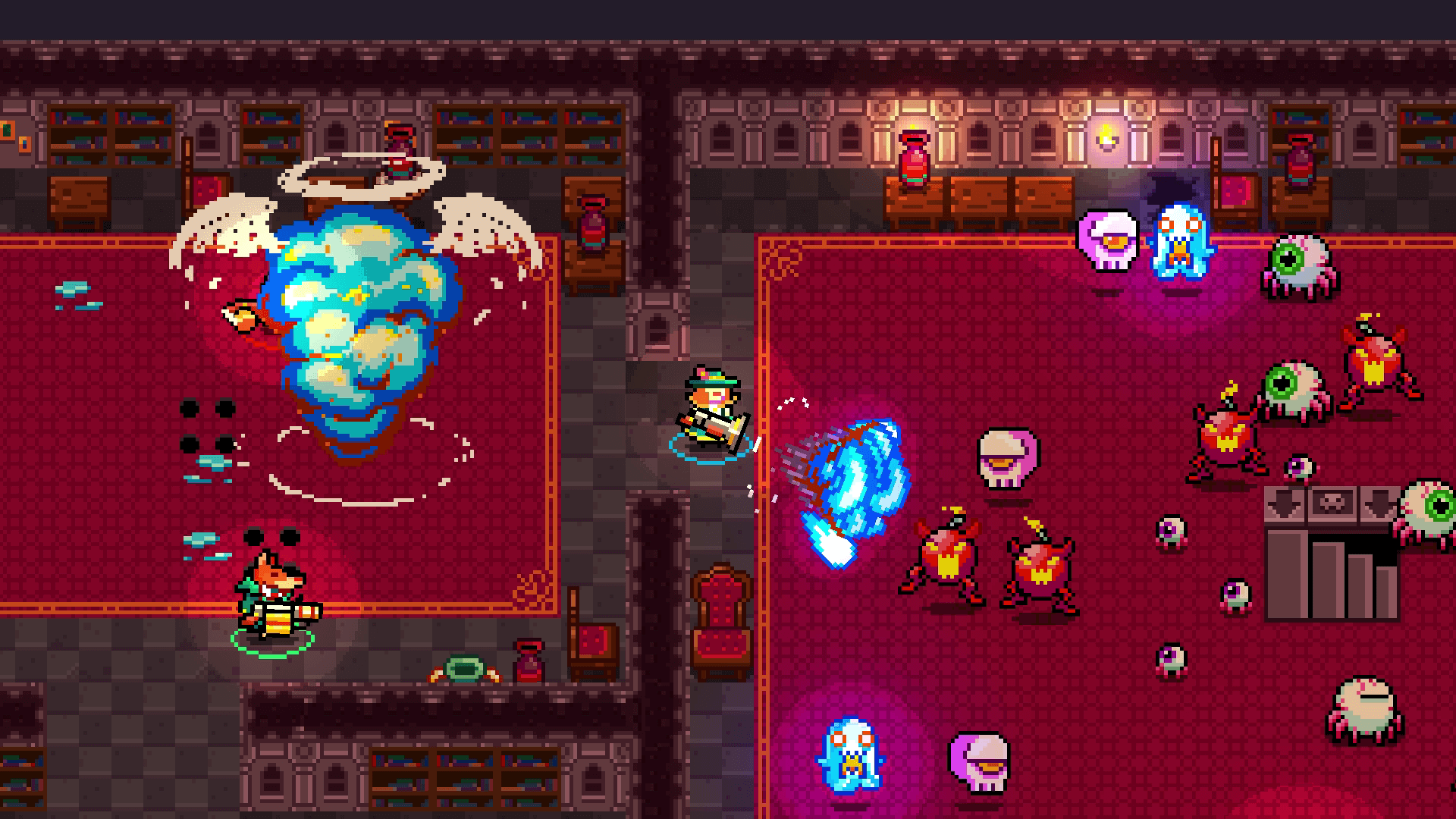 Monsters & Monocles is a twin stick, arcade style, retro shooter that supports up to 4 players. I have to be honest when I say I was drawn in by the theme of the game as it appealed to my fascination with all things horror related. That being said; I was a little disappointed right from the start. I was instantly reminded of Nuclear Throne and Enter the Gungeon, both of which were top-notch titles in the genre. Considering the plaudits both of those titles gained that’s always going to be a tough act to follow.
