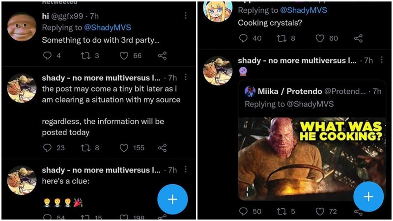 A leaker named Shady tweeted in many cryptic ways that their most significant leak to date was on the way. He hinted that the character would be a “third party” rather than someone Warner Bros. already owned by posting three male emojis and a party hat. Shady posted an alien emoji first, then added “there’s more than one,” then retweeted an image with the caption “what was he cooking.” The leaker also included a crystal ball emoji, which led people to speculate that they meant “cooking crystals,” which Shady also retweeted.