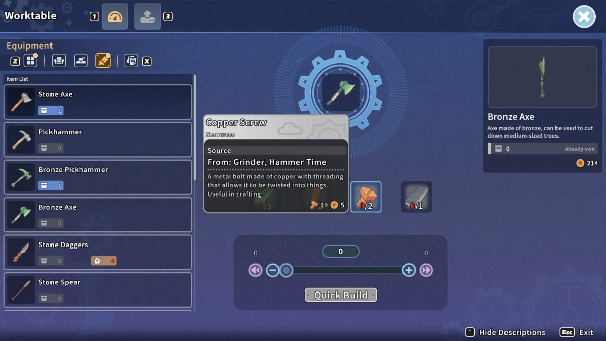 My Time at Sandrock: Bronze Axe Crafting Guide
