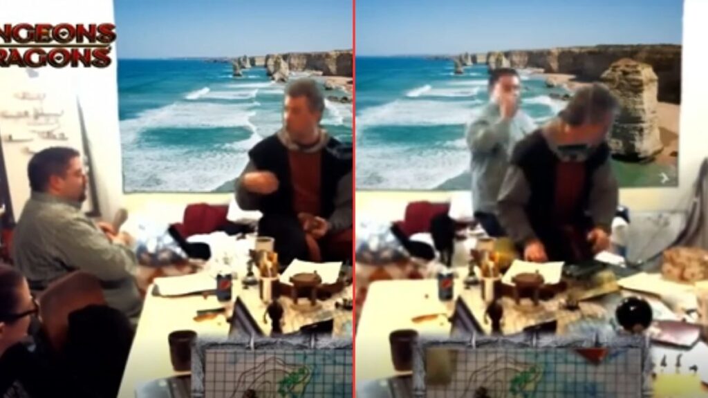Instead of acting like a normal person, he decided to stand up instead to leave the game. However, instead of leaving with any dignity, he attacks the Dungeon Master from behind. The attack wasn’t very aggressive, but it was definitely enough to cause tension in the room.