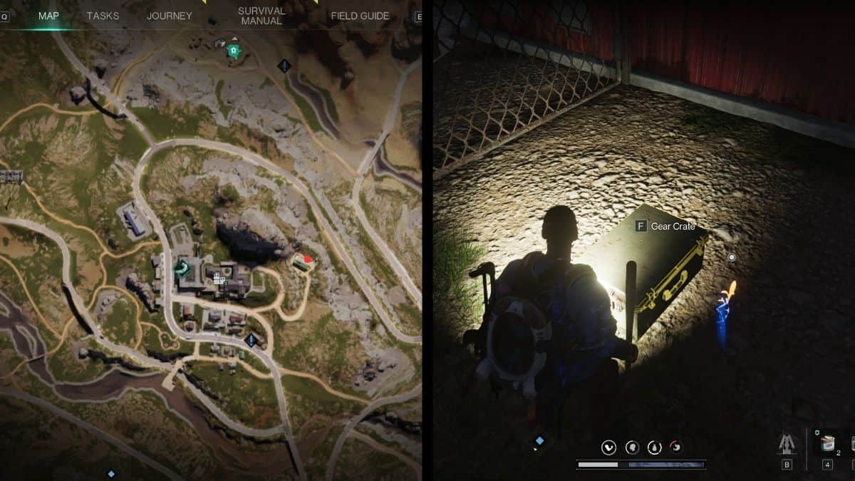 The gear crate is located behind a warehouse at the eastern end of Holt Town in Once Human. The coordinates you’re looking for are (3989, -4378).