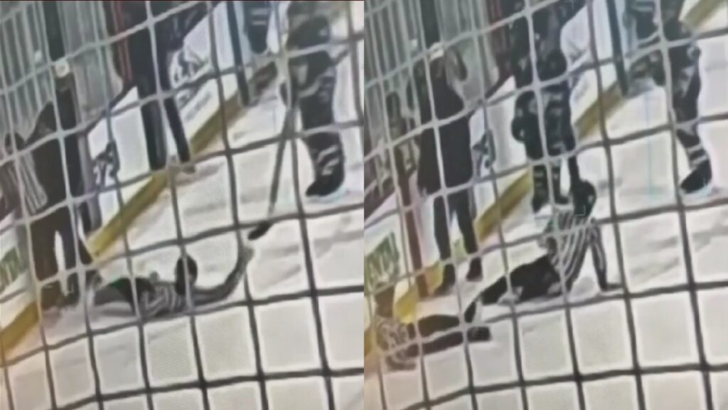 There are some video clips that, although brief, are so astonishing that they just demand repeat viewings. This footage, shared by the Pacific Northwest Amateur Hockey Association, is one of those. In it, two young referees are in discussion during a 12U hockey game in Seattle. Suddenly, a large man strides up to the referees and barges them to the ice.
