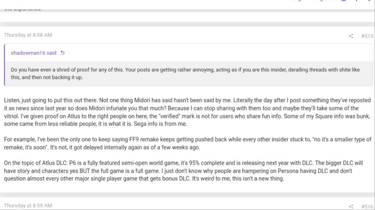 The Persona 6 news comes via a forum post on the website Resetera, a place frequented by leaker “Head on the Block.” The leaker, previously known as “I’m a Hero Too” recently posted this latest information in a lengthy response that also includes information about the rumored Square Enix Final Fantasy 9 remake and a small shot thrown toward fellow reputable Atlus leaker Midori.