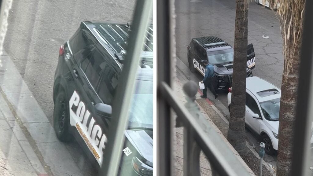 The pictures come from user Super-Perspective324, who posted them on the r/phoenix subreddit. In the images, you can observe a Phoenix police SUV parked “illegally” next to a red line and blocking a person’s driveway while the officers were getting their lunch.