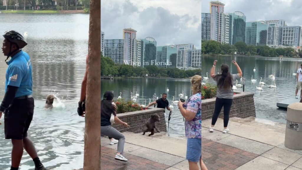 Although the event was likely unpleasant for the dog’s owners, it entertained many people who were also trying to enjoy an outing to the lake. TikToker thewhimsywifey shared what was happening in the caption of her post. “We left after 45 minutes watching this drama at Lake Eola in Orlando today. The dog made so many people laugh, and despite the trouble, he was having a blast,” she wrote.