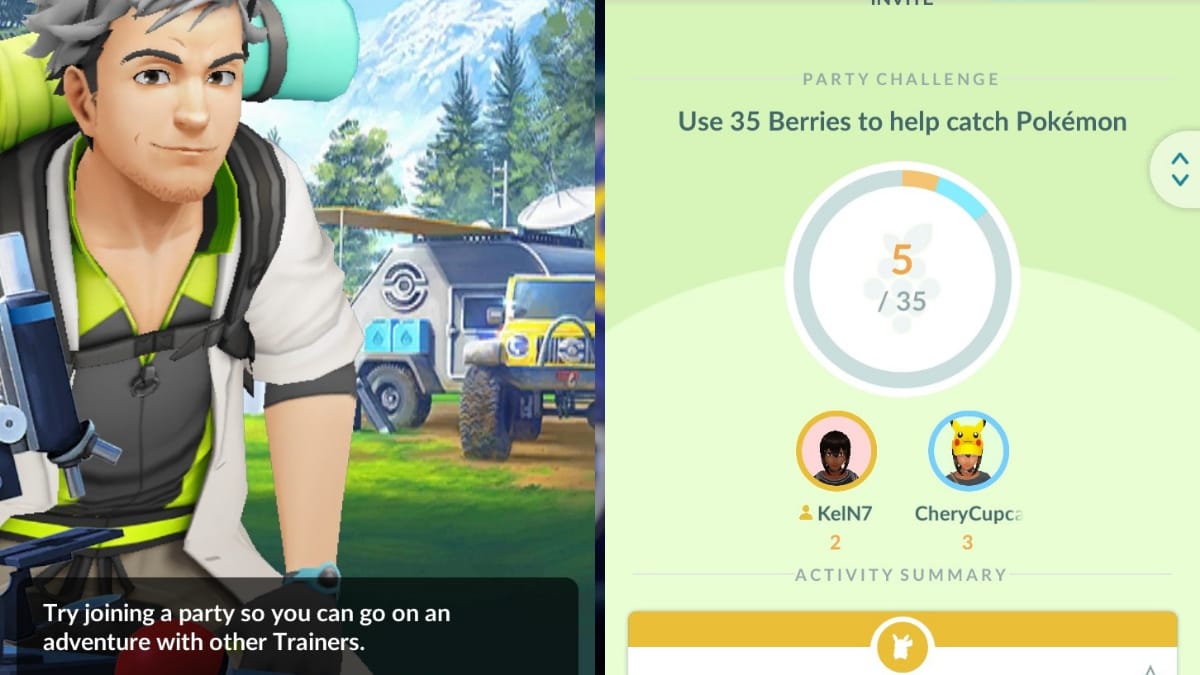 Party Play is a new addition to the game where you can start or join a party of four with nearby friends or other players. You all collaborate to complete a series of party challenges in Pokemon GO. For instance, you may have to use a certain amount of Berries to catch Pokemon.