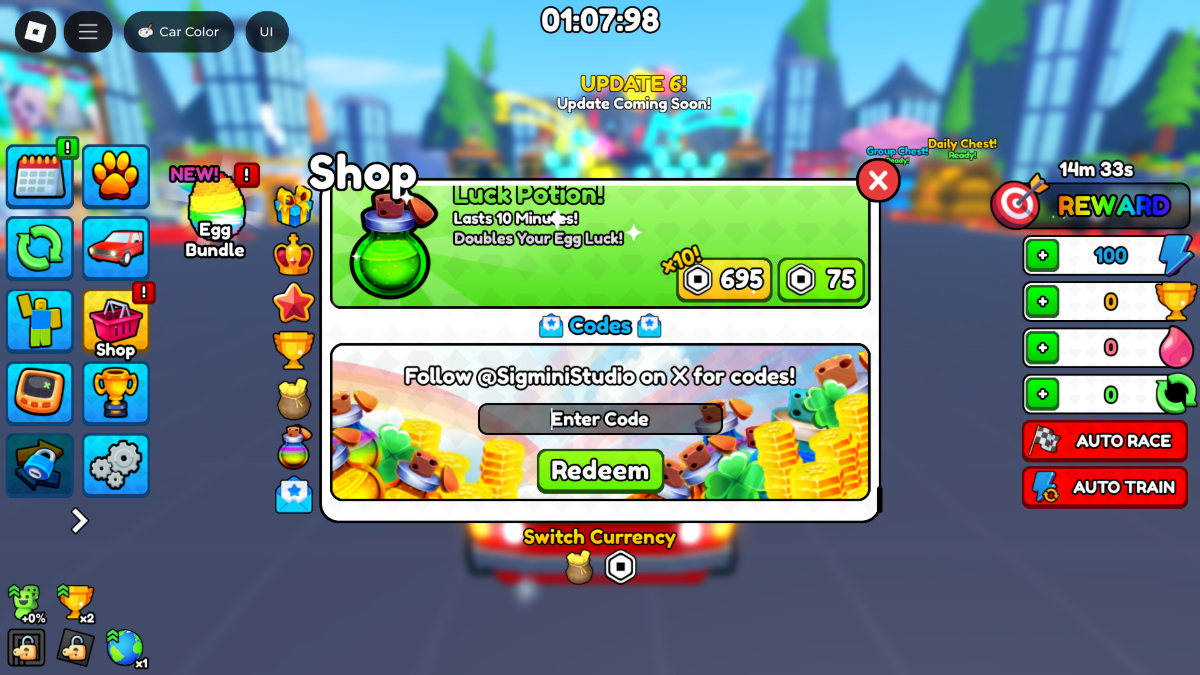 Roblox codes are the fuel in the engine of Car Training success. If you don’t want to limp along on fumes, it’s wise to gas up with every Win and Luck Potion that you can. Here are the active codes in Car Training: