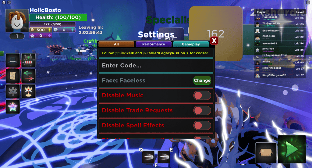 To ensure you’re receiving all the rewards associated with the active codes, you need to know the entire process of redeeming a code. This process works similarly in all Roblox titles, but you can see the specific steps for Fabled Legacy below: