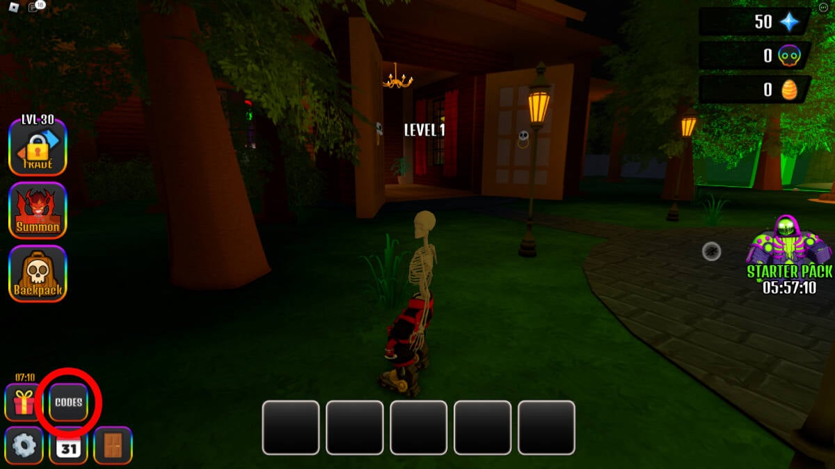 - Press the Codes button on the bottom left-hand corner of the screen.