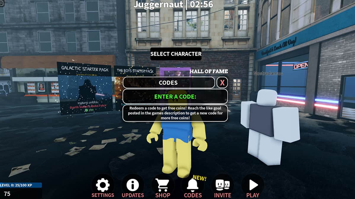 Claiming and redeeming any working Roblox Ultimate Battleground promo codes can be easily done through the in-game menu. Here’s how: