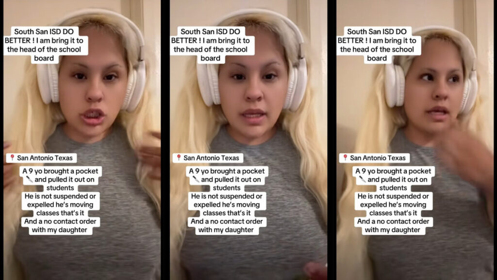 The mom recounted on TikTok that she received a call from the principal after school hours explaining what happened. According to her, the boy, who is a year younger than her 10-year-old daughter, pulled out the knife during class when he became upset that she was talking to another classmate. Police and Child Protective Services were contacted, but the woman says the school’s only response was to move the boy to another class, ban backpacks for him, and issue a no-contact order with her daughter.