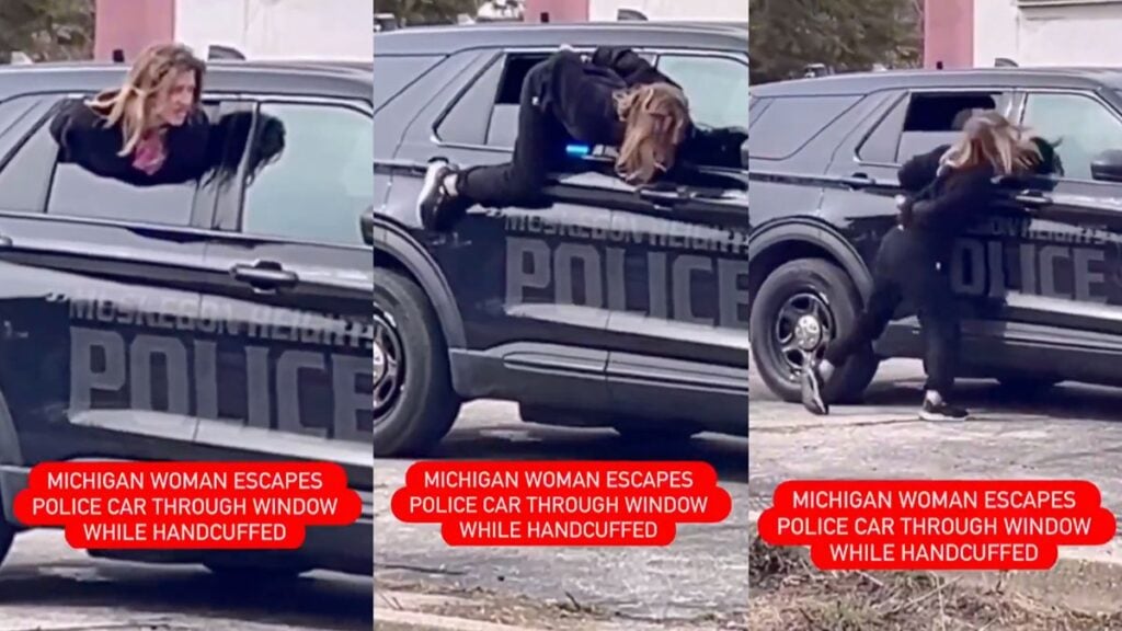 A Michigan detainee attracted a bunch of groupies on the internet after making an unconventional escape from a police car through the window while in handcuffs. The almost cinematic scene, which was subsequently posted on X, was captured by an onlooker running commentary behind the camera. The woman could be seen peering out through the barely open window of a Muskegon Heights Police Department cruiser.