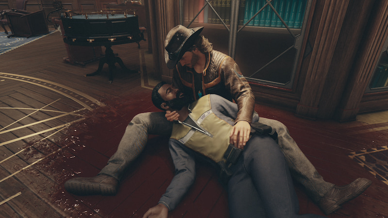 Head back to New Atlantis and back into the Lodge, where you previously left Barrett and the others. Vasco is in rough shape but not critically damaged. He tells you that Noel escaped with the artifacts while everyone else tried to hold off the Hunter, who was able to utilize some cloaking. Sam will mourn Barrett, who dies in the attack.