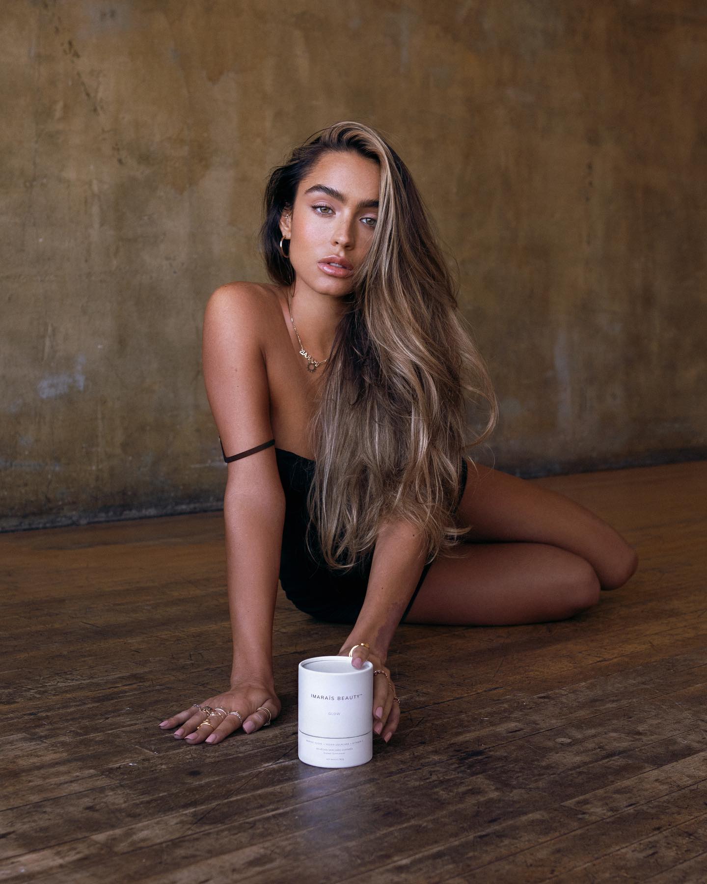 Looking right at the camera, Sommer rocked her light locks down as she placed one hand to a white-packaged jar of her gummies, also going discreet with necklace jewelry.