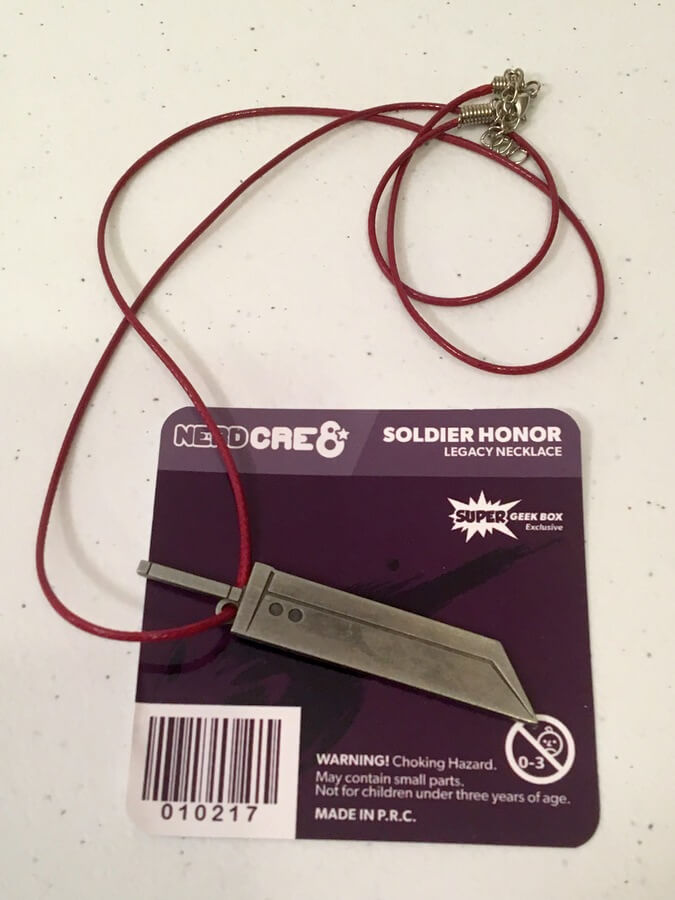 This NerdCre8 exclusive Soldier Honor Necklace ( a Super Geek Box Exclusive) looks like a sword from Final Fantasy on a fabric chain/string. It’s not necessarily something I would wear, but it’s a cool collectible for those Final Fantasy fans out there.