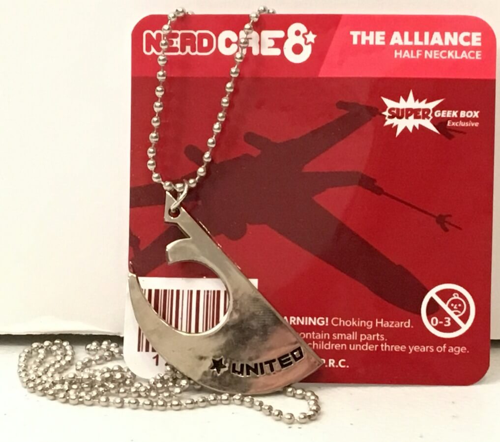 The Alliance Half Necklace is like two halves of a symbol folded into one-half. “United” on one side and “We Stand” on the other. It’s a nice novelty item.