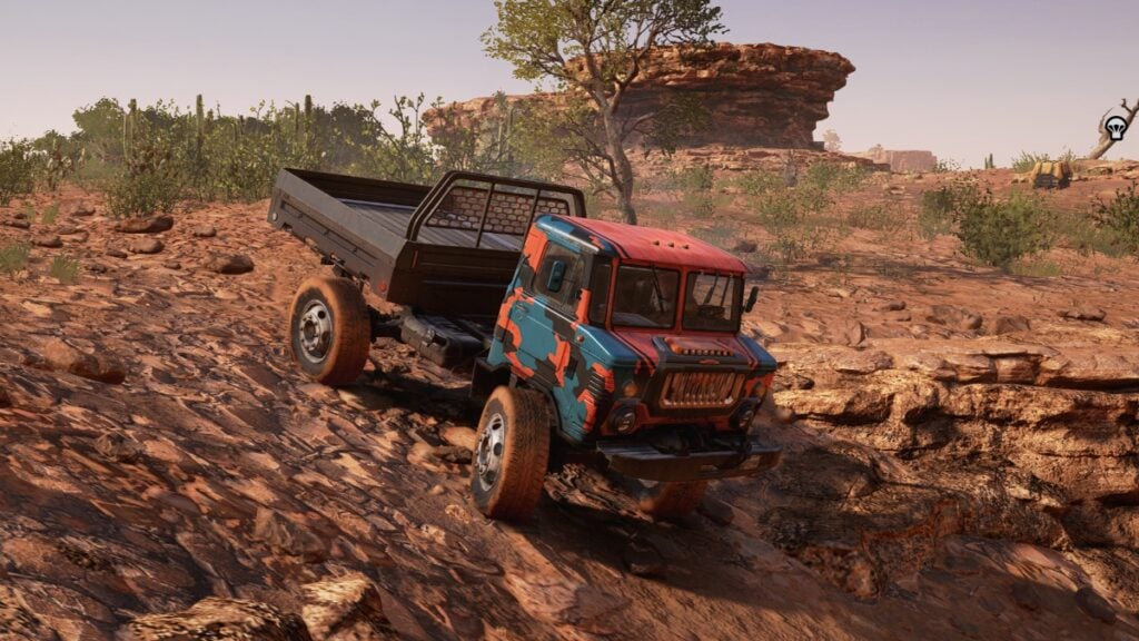 Sunlight beams off the hood of a truck in Expeditions: A MudRunner Game