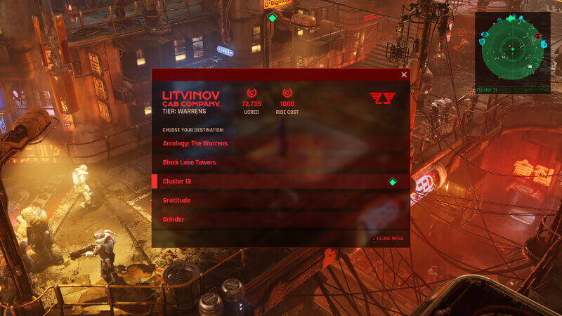 No matter how far you wish to go, the trip will cost 1,000 uCreds if you hail for a cab. As mentioned beforehand, it’s a lot more direct than the Metro stops. With the amount of loot you scoop up from fallen foes and opened chests, you’re probably loaded with duplicates. Sell them at the merchants at Cluster 13. They’re literally collecting dust in your inventory, and that is easy money for you if you seek to fast travel a lot on Veles.