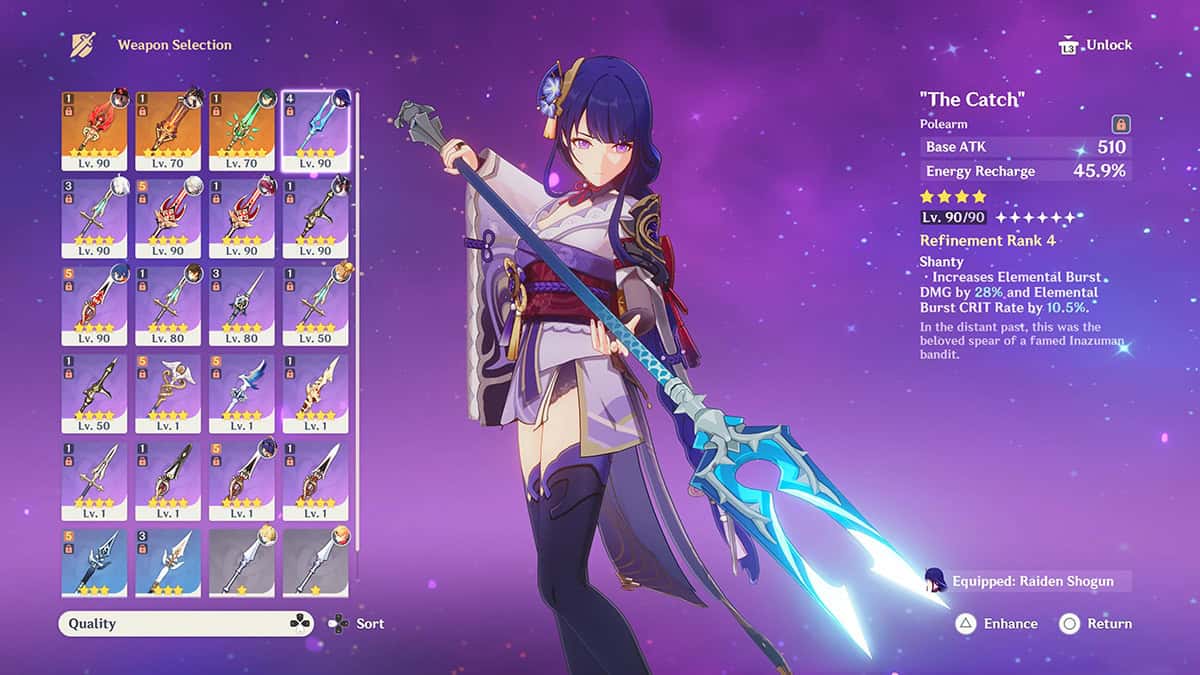 The Best 4-Star Weapons for the Raiden Shogun in Genshin Impact